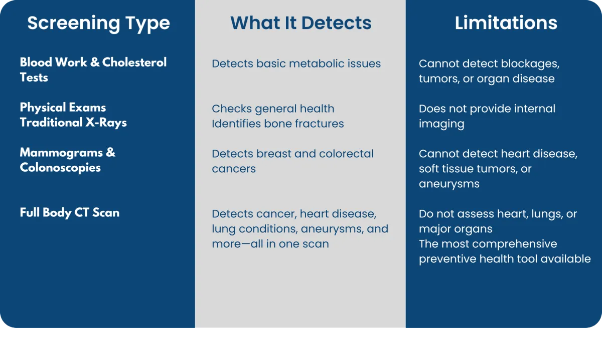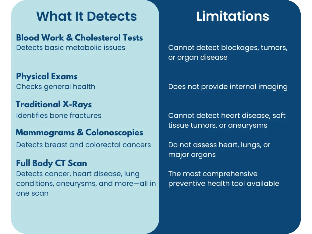 Many people rely on standard medical tests such as blood work, cholesterol checks, or physical exams. While these are important, they do not provide a full picture of your health.